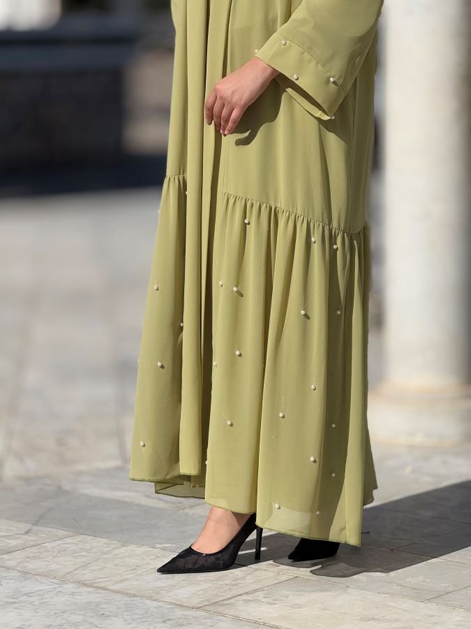 Fadwa est une abaya élégante et raffinée. Son tissu doux et léger épouse parfaitement la silhouette, tandis que ses finitions délicates ajoutent une touche de grâce et de modernité.