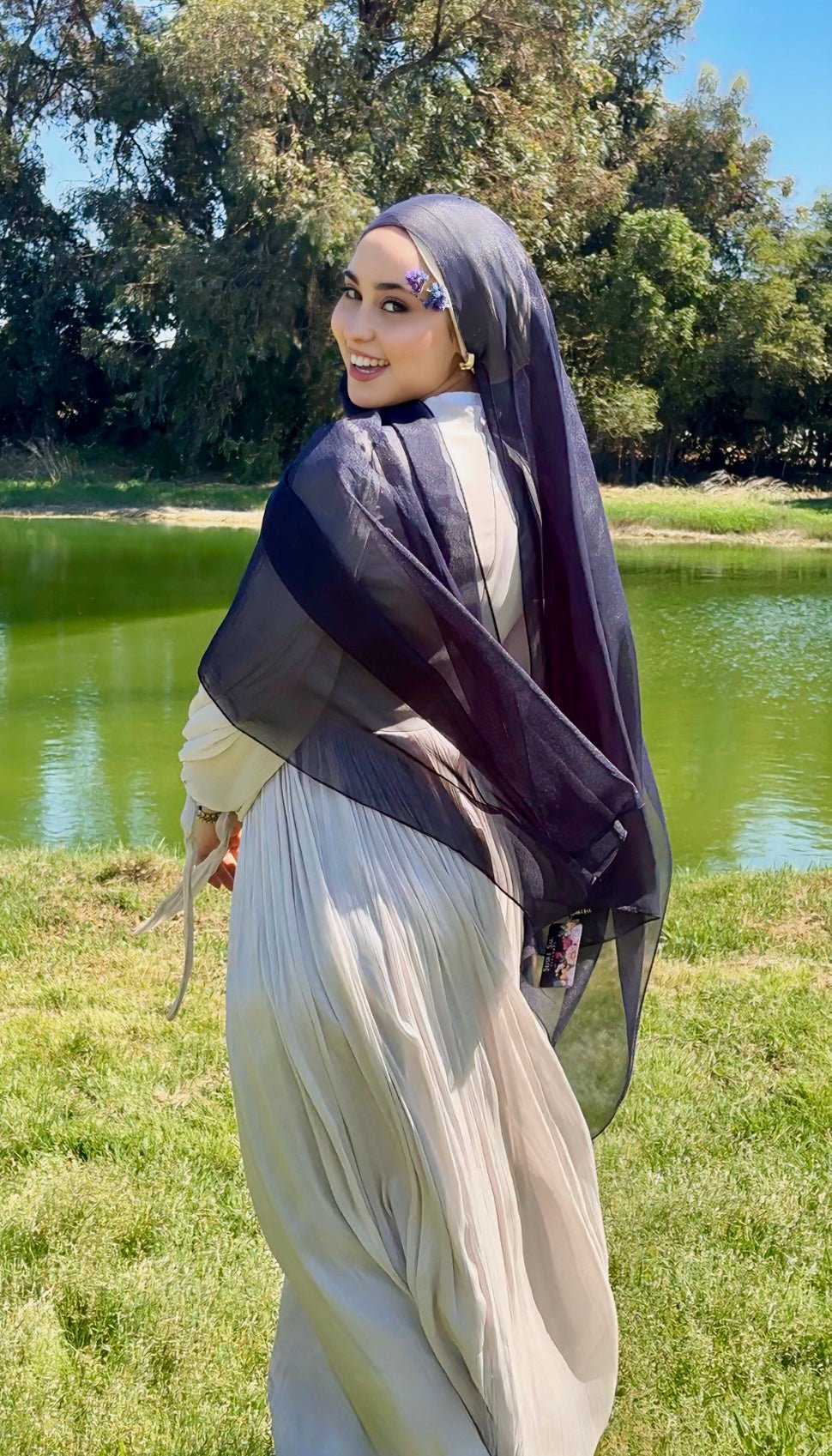 Découvrez notre élégant hijab bleu nuit.