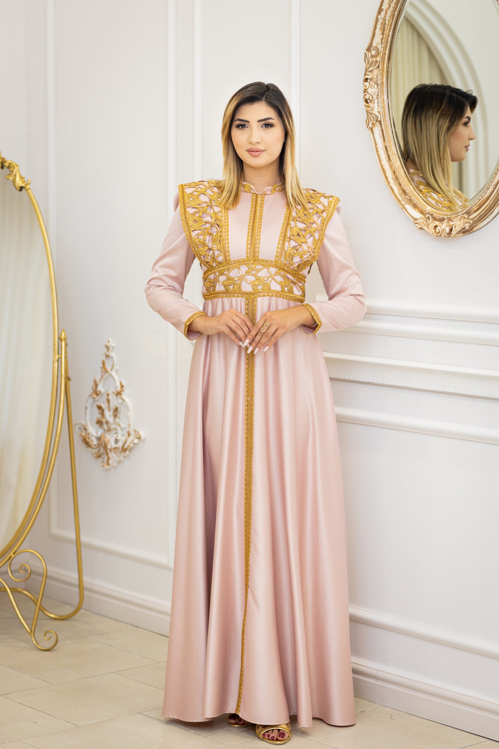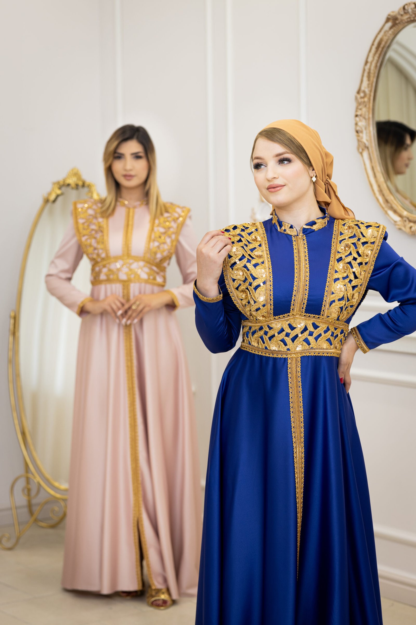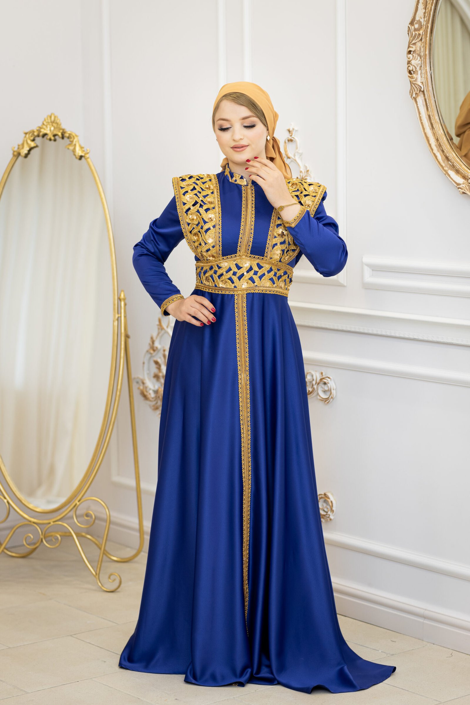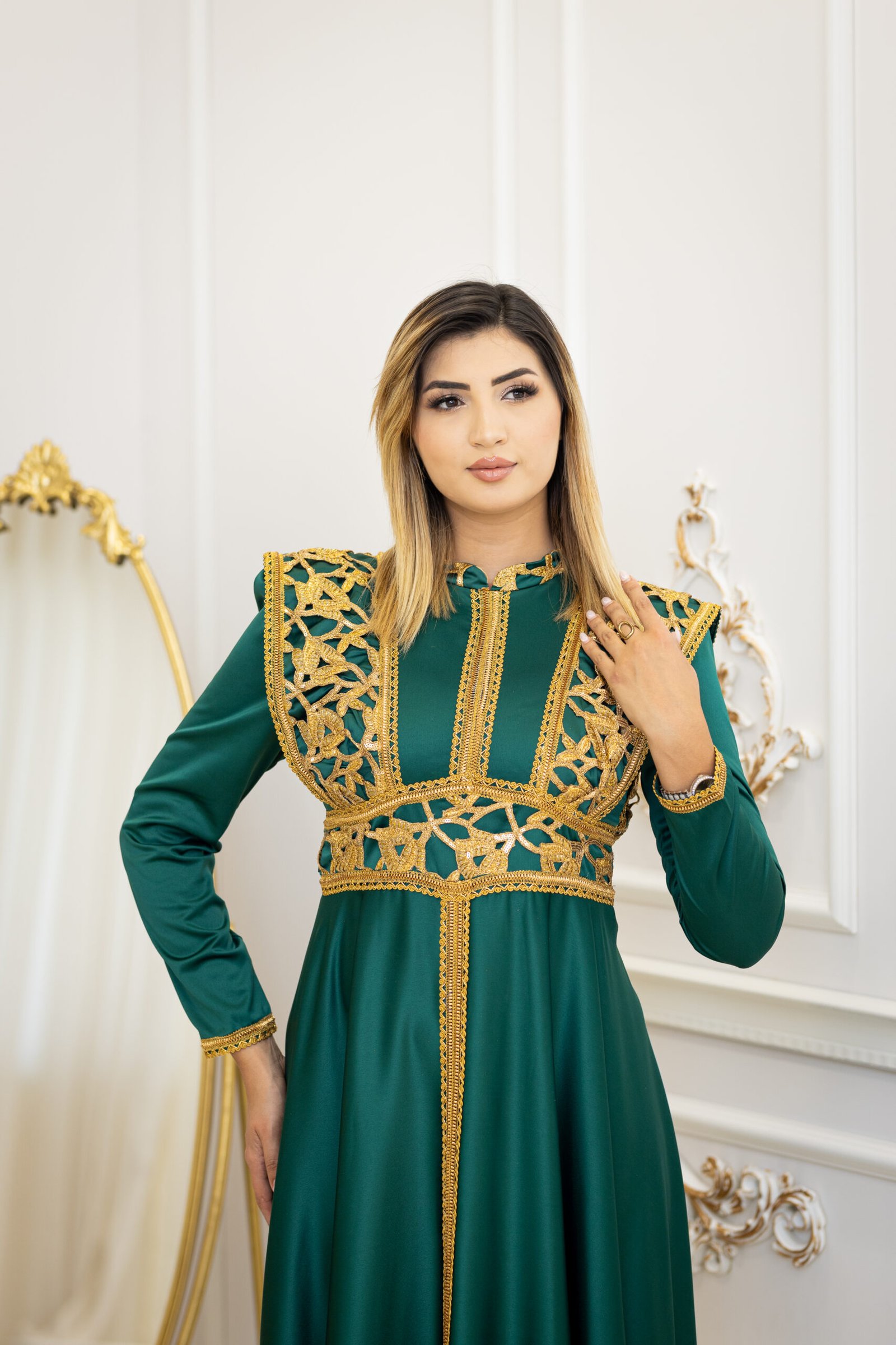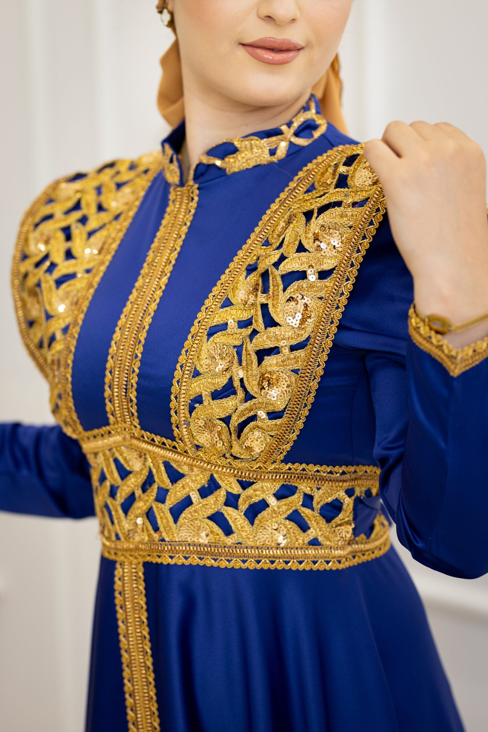 Kounouz est un koftan qui incarne l’harmonie parfaite entre modernité et héritage. Son tissu fluide aux détails subtils lui donne une allure à la fois noble et intemporelle.