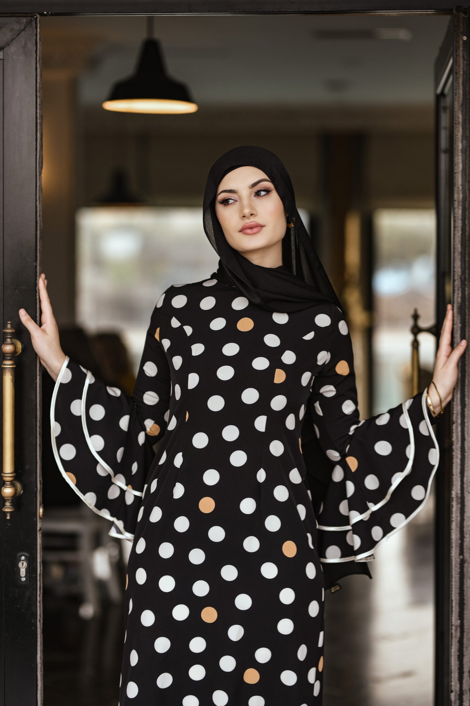 . ياقين فستان أنيق بأسلوب مريح. قماشها خفيف وقصّتها مريحة تعطي إطلالة طبيعية وراقية تناسب كل المناسبات