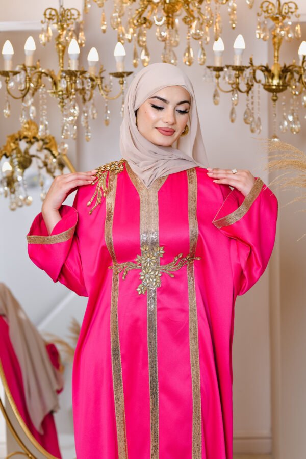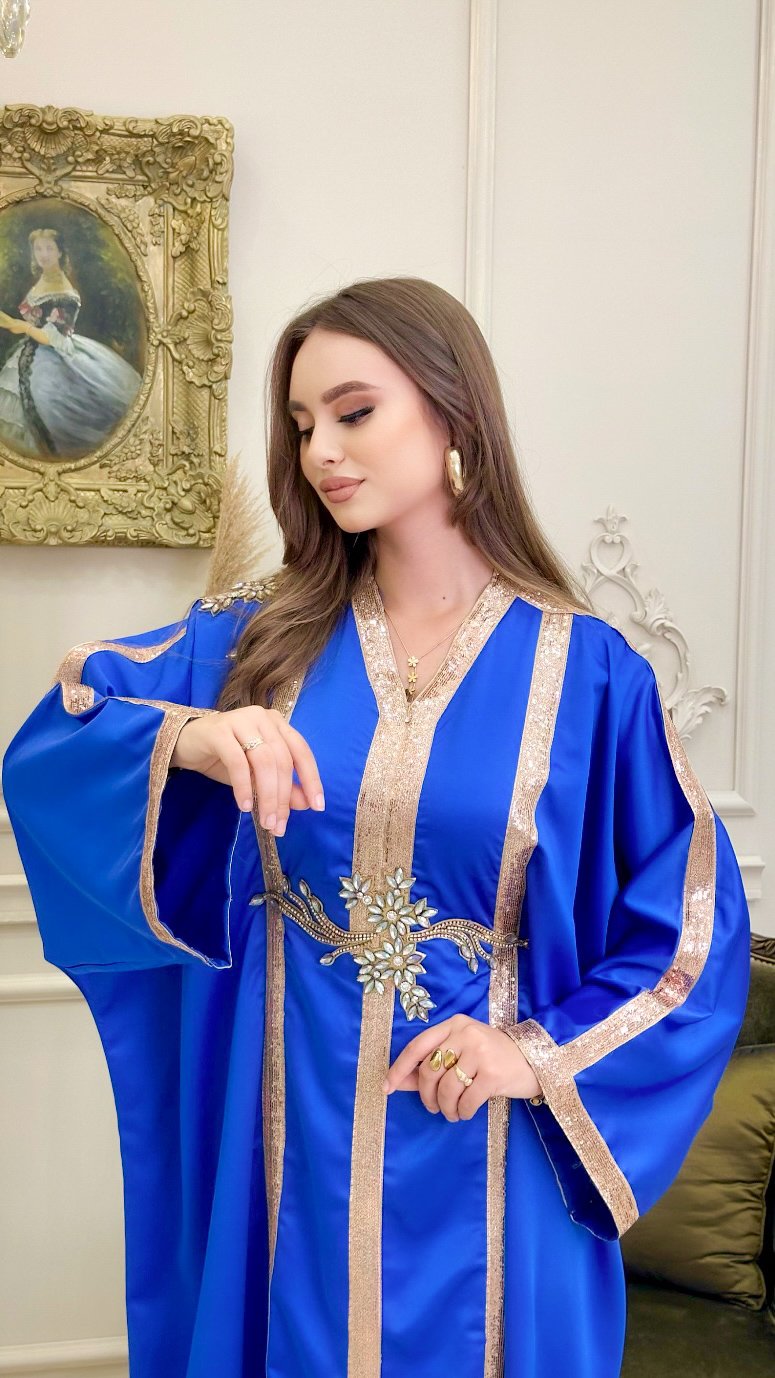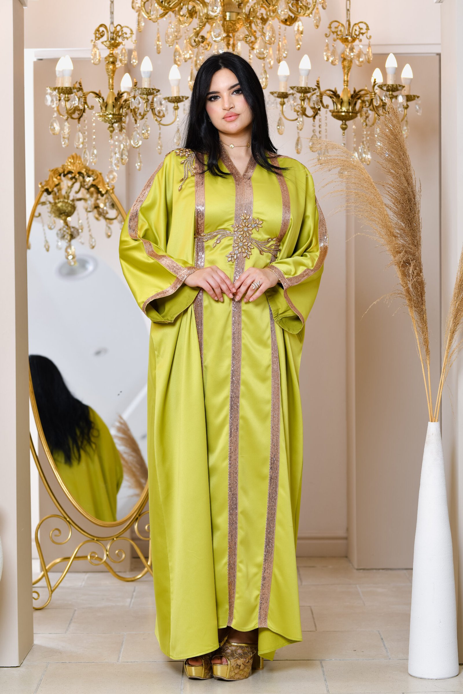 Samarkand est un koftan qui raconte l’Orient et les voyages. Son tissu léger et ses couleurs captivantes, ses broderies murmurent les secrets des civilisations sous les étoiles.